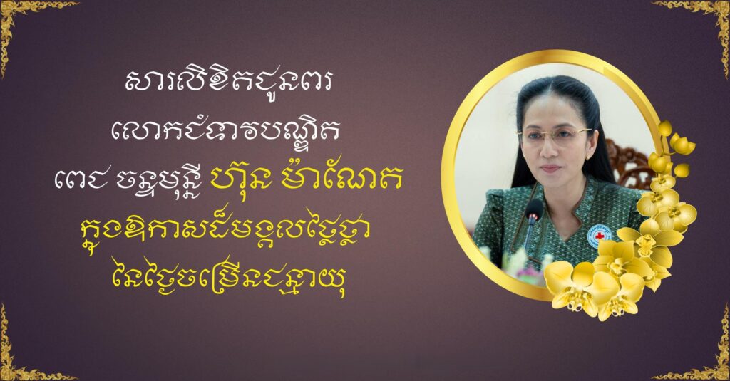 ជាថ្មីម្តងទៀតយើងខ្ញុំទាំងអស់គ្នា សូមលើកហត្ថបួងសួងដល់គុណបុណ្យព្រះរតនត្រ័យ គុណកែវទាំងបី ឫទ្ធិបារមីខ្លាំងក្លា វត្ថុស័ក្តិសិទ្ធិទាំងឡាយក្នុងលោក សូមមេត្តាតាមជួយអភិបាល គាំពារ ថែរក្សា លោកជំទាវបណ្ឌិត និងសម្តេចមហាបវរធិបតី ព្រមទាំងក្រុមគ្រួសារ សូមសមប្រកបតែនឹងពុទ្ធពរទាំងបួនប្រការគឺ អាយុ វណ្ណៈ សុខៈ ពលៈ ជានិច្ចនិរន្តរ៍៕