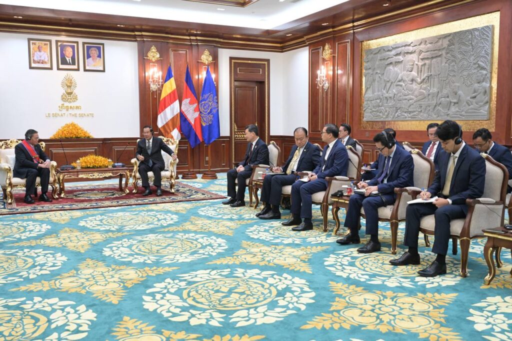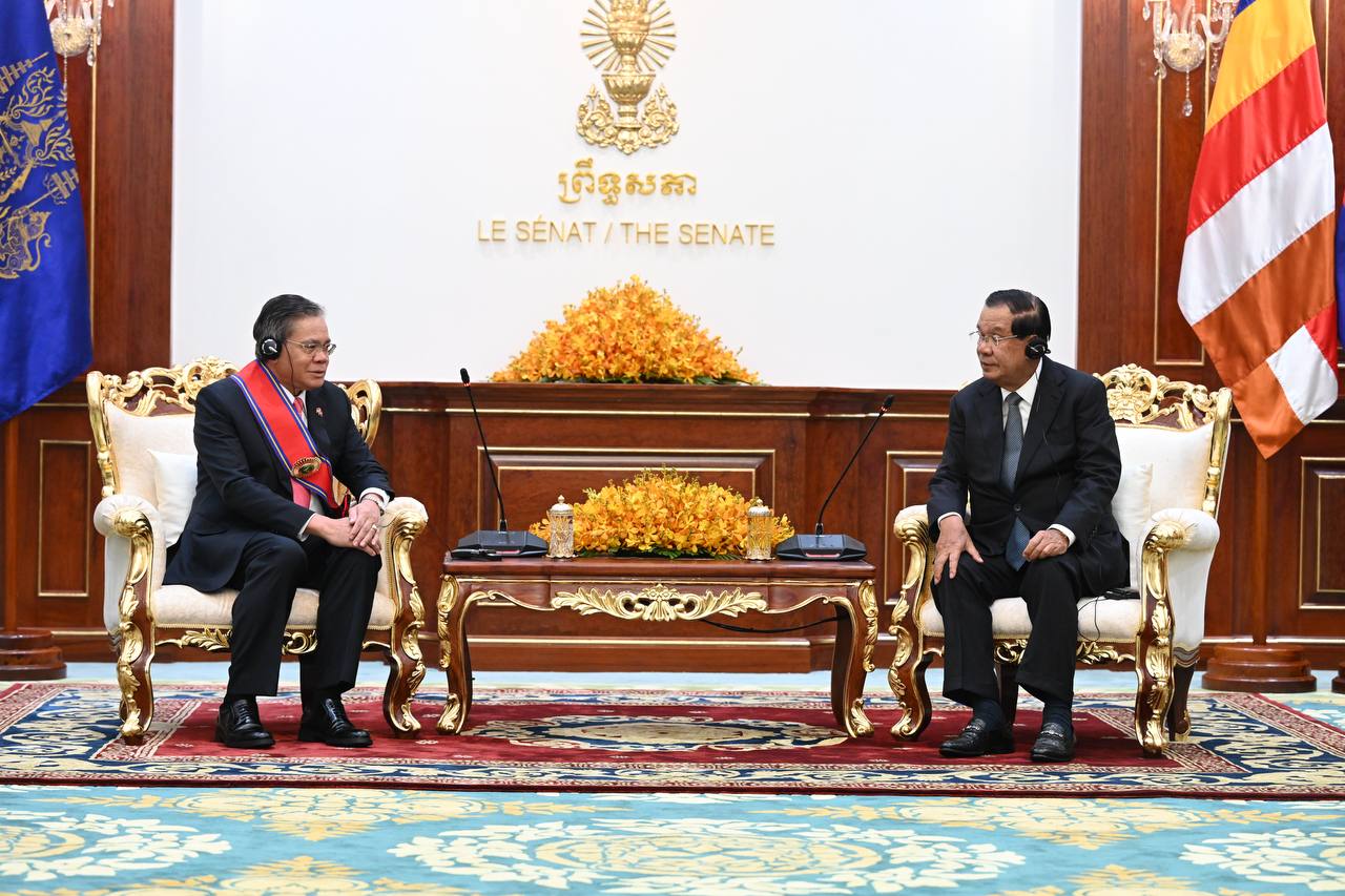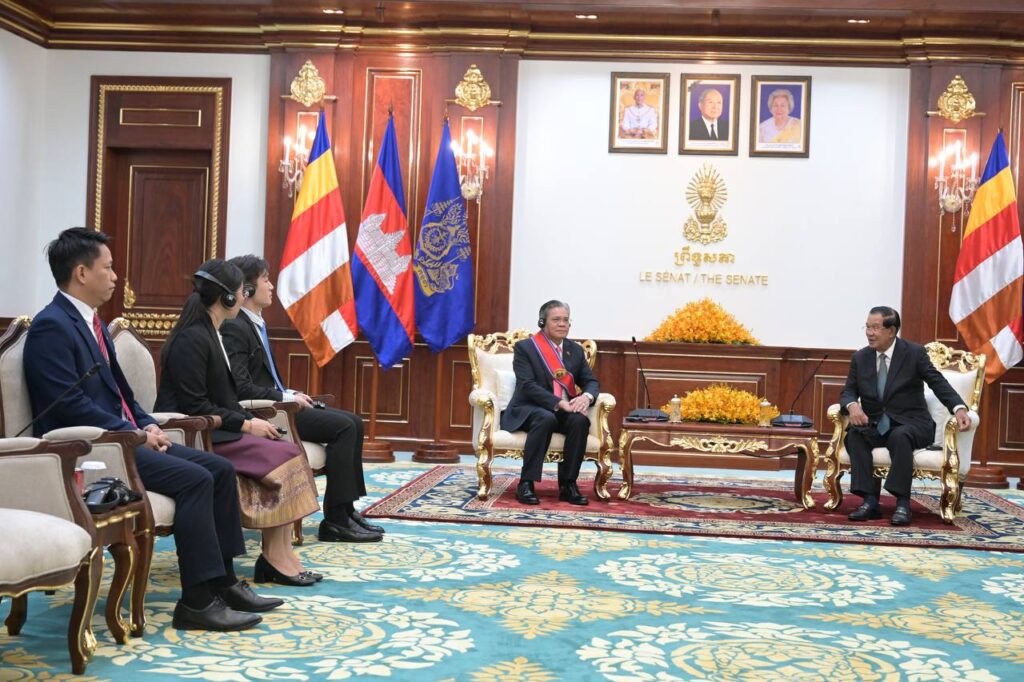 (ភ្នំពេញ)៖ សម្តេចតេជោ ហ៊ុន សែន ប្រធានព្រឹទ្ធសភានៃកម្ពុជា នៅព្រឹកថ្ងៃទី២៦ ខែមករា ឆ្នាំ២០២៦នេះ អនុញ្ញាតឱ្យលោក Buakeo Phumvongsay ឯកអគ្គរដ្ឋទូតនៃសាធារណរដ្ឋប្រជាធិបតេយ្យប្រជាមានិតឡាវ ប្រចាំកម្ពុជា ចូលជួបសម្តែងការគួរសម និងជម្រាបលា នៅវិមានសាមគ្គីភាព រាជធានីភ្នំពេញ។