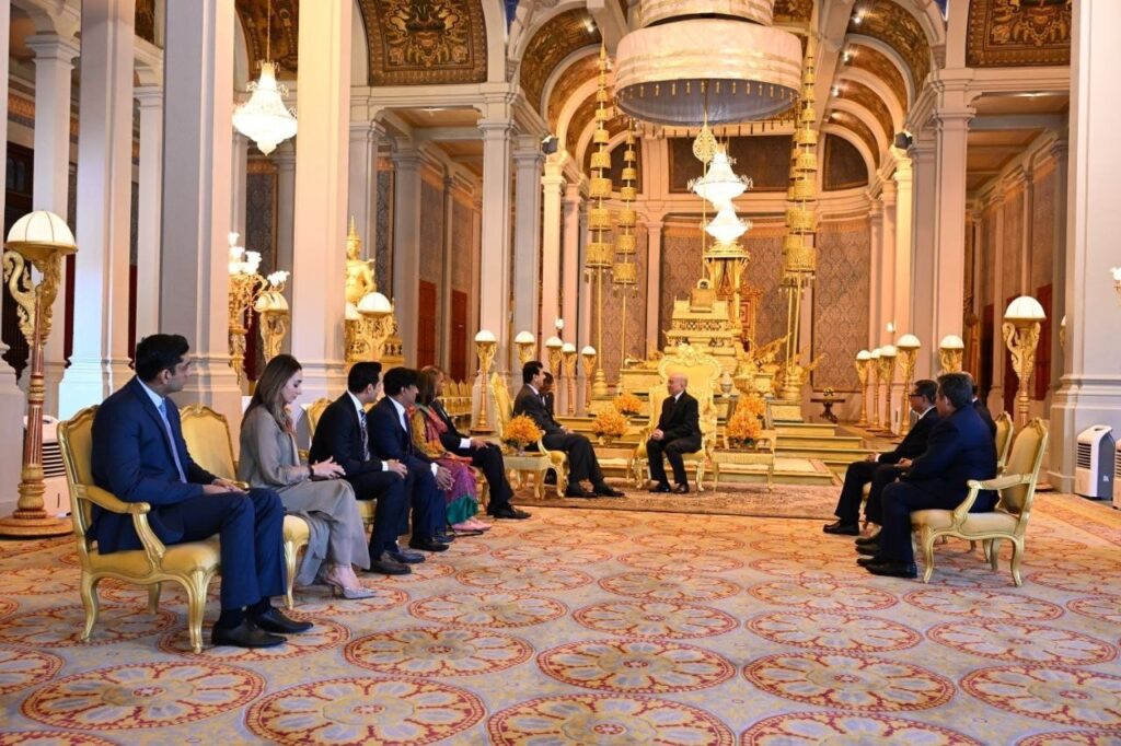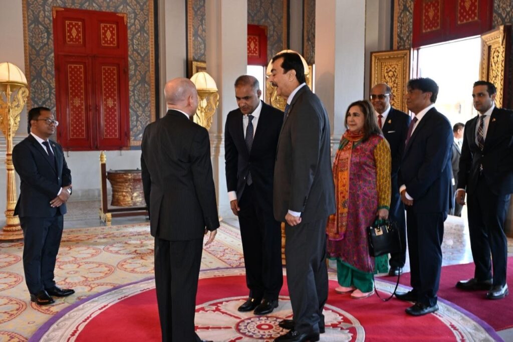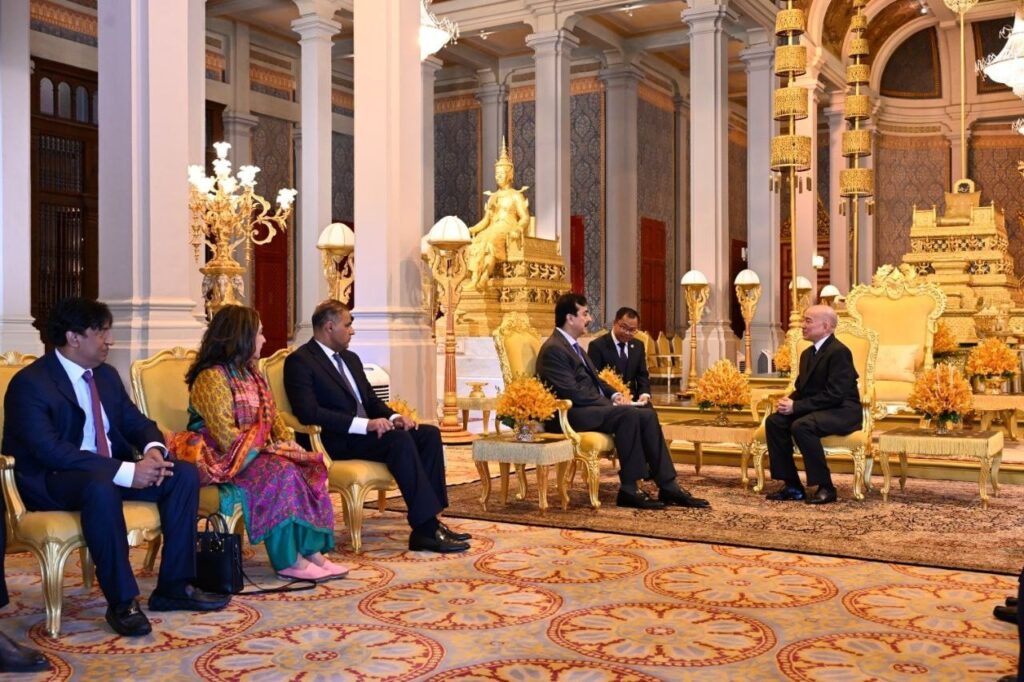 ព្រះមហាក្សត្រនៃកម្ពុជា ព្រះរាជានុញ្ញាតឲ្យប្រធានព្រឹទ្ធសភាប៉ាគីស្ថាន ចូលក្រាបបង្គំគាល់ (ភ្នំពេញ)៖ នៅព្រឹកថ្ងៃទី៣ ខែកុម្ភៈ ឆ្នាំ២០២៦នេះ លោក ស៊ីយ៉េដ យូសាហ្វ រ៉ាសា ហ្គីឡានី (Syed Yusuf Raza Gillani) ប្រធានព្រឹទ្ធសភា នៃសាធារណរដ្ឋអ៊ីស្លាមប៉ាគីស្ថាន បានចូលក្រាបបង្គំគាល់ ព្រះករុណា ព្រះបាទ សម្តេចព្រះបរមនាថ នរោត្តម សីហមុនី ព្រះមហាក្សត្រនៃព្រះរាជាណាចក្រកម្ពុជា ជាទីគោរពសក្ការៈដ៏ខ្ពង់ខ្ពស់បំផុត នៅព្រះបរមរាជវាំង ក្នុងឱកាសដឹកនាំគណៈប្រតិភូព្រឹទ្ធសភាប៉ាគីស្ថាន អញ្ជើញមកបំពេញទស្សនកិច្ចផ្លូវការ នៅព្រះរាជាណាចក្រកម្ពុជា ពីថ្ងៃទី២-៥ ខែកុម្ភៈ ឆ្នាំ២០២៦៕