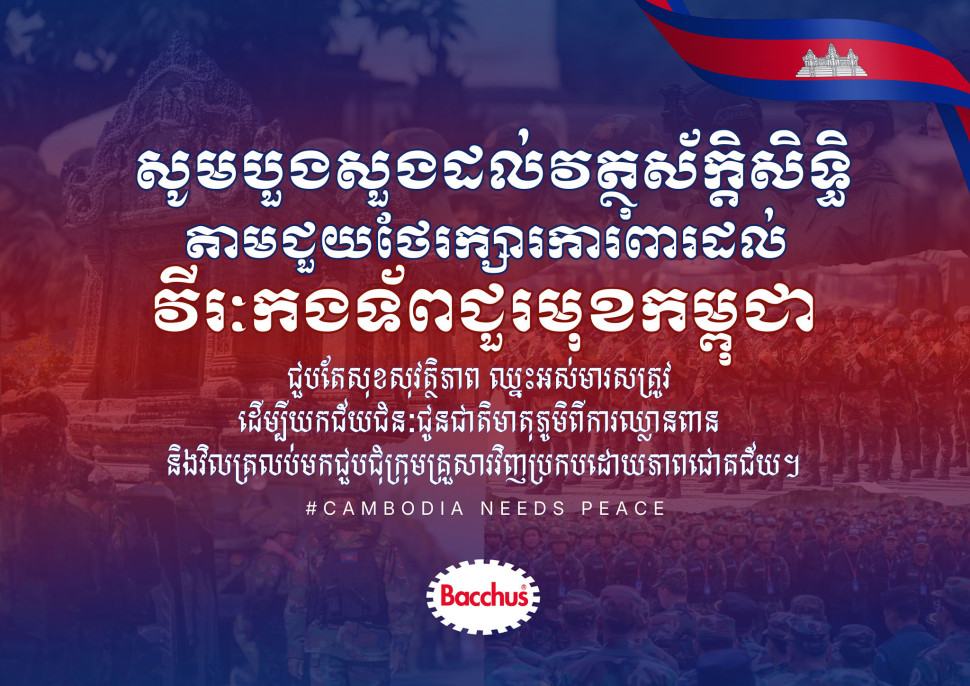 ក្រុមហ៊ុនភេសជ្ជៈប៉ូវកម្លាំងបាកាស (Bacchus) បានប្រកាសចូលរួមបរិច្ចាគថវិកាចំនួន ២០ម៉ឺនដុល្លារអាមេរិក ជូនចំពោះសម្តេចតេជោ ហ៊ុន សែន ដើម្បីចូលរួមចំណែកជួយឧបត្ថម្ភដល់កងទ័ពកម្ពុជាដែលកំពុងឈរជើងនៅជួរមុខ និងជនភៀសសឹក។